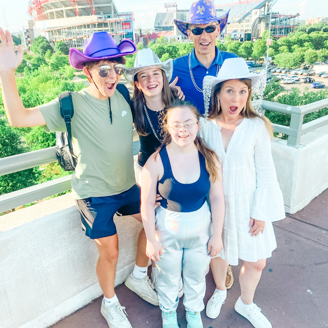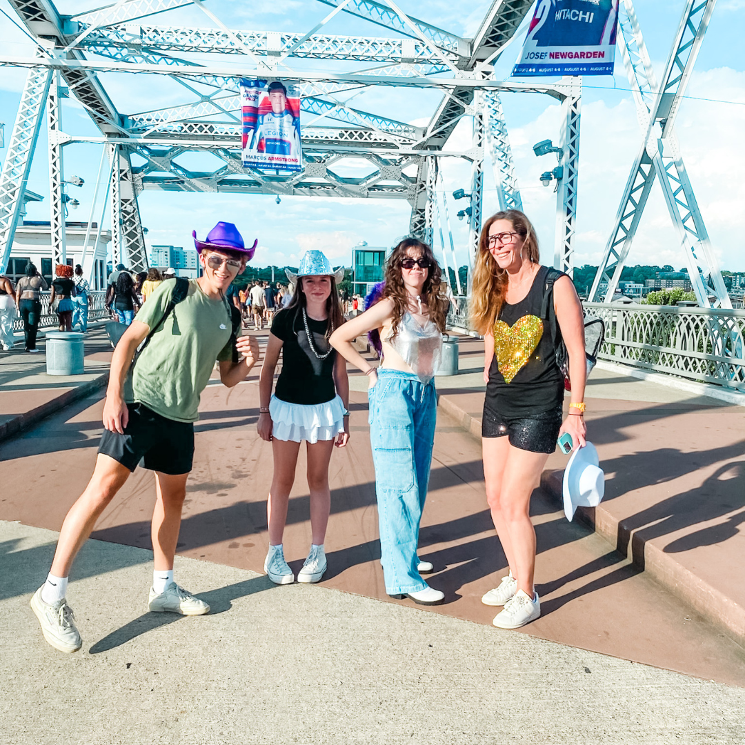 And then, a few weeks later, I realized that she was playing on the night before one of my best friend’s 50th birthdays. And our other close friend would also be in Nashville with her daughter that night. And our friend with the birthday loves Beyoncé. And stadium concerts. And dressing up. And, as it turns out, rolling glitter on my arms and legs.