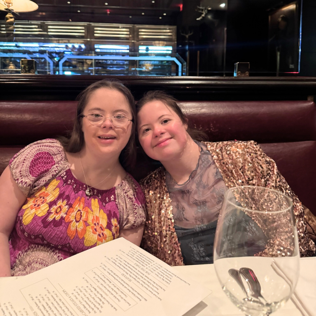 Sparkles. Purple floral dresses. Hot pink shirts. And these two beautiful young ladies enjoying each other, the music, and—most of all—the three numbers at the very end where they led the dancing in the aisle!